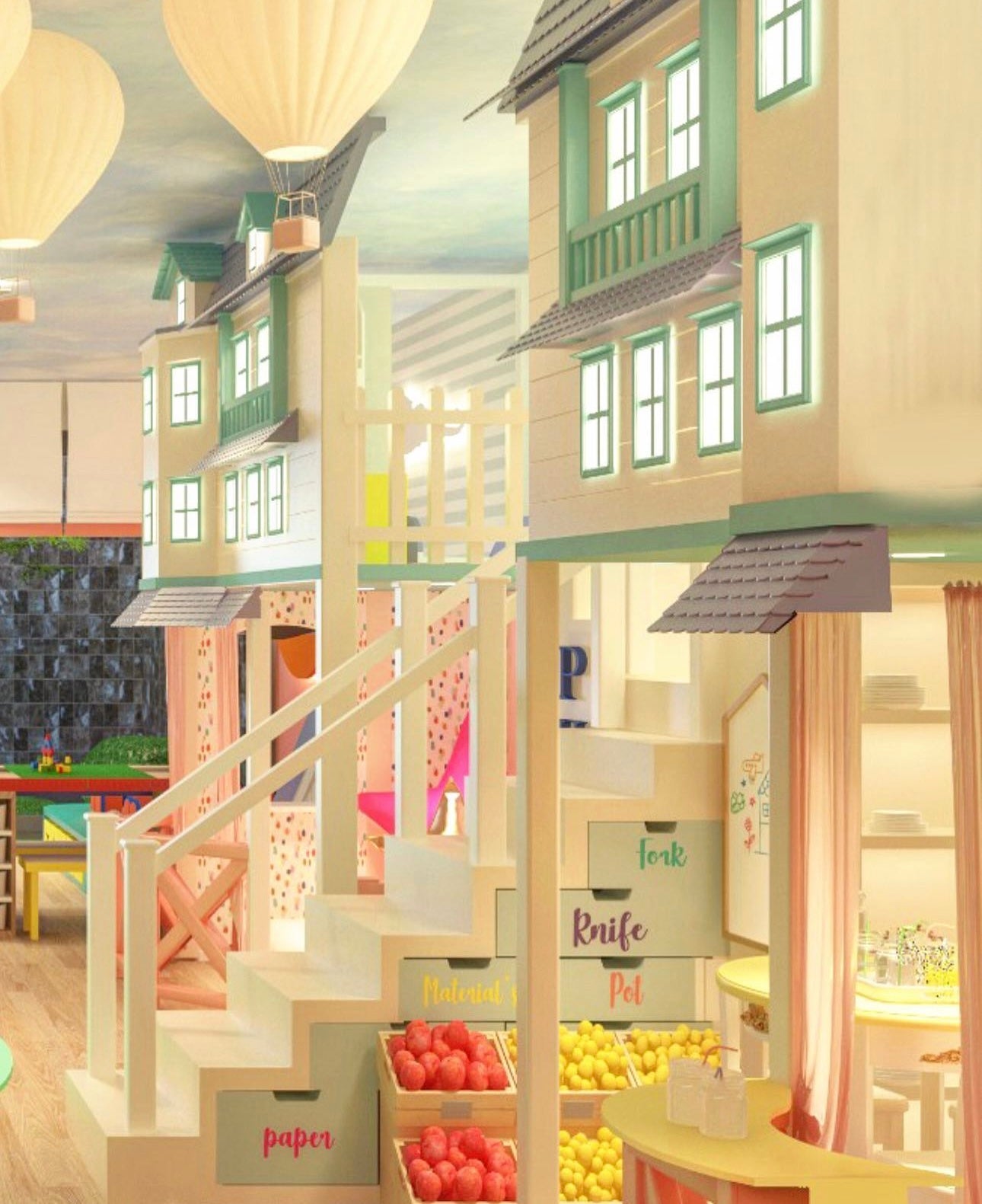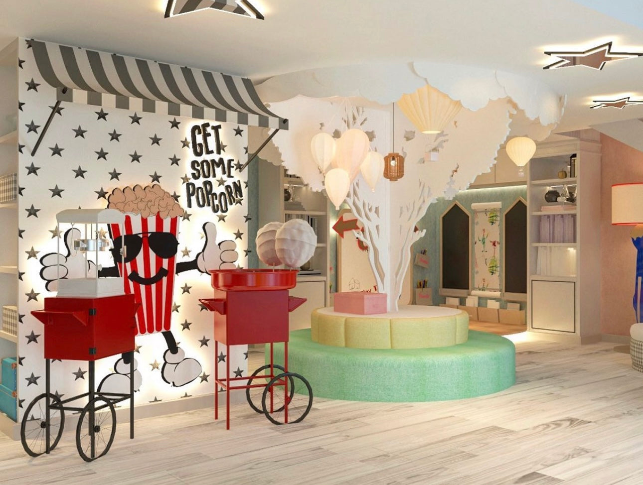 An imaginative home play space where hot-air balloons, glowing mushrooms, and soft landscapes invite children to lose themselves in a world of wonder and discovery.
